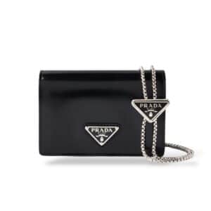 Prada Triangle Logo Wallet on Chain in Brushed Leather