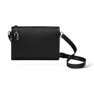 Prada Saffiano-leather black shoulder bag, featuring a clean, structured silhouette with signature crosshatch texture. Finished with refined hardware and a practical interior, this timeless design combines durability, elegance, and Prada’s iconic minimalist sophistication for everyday wear.