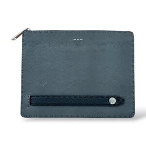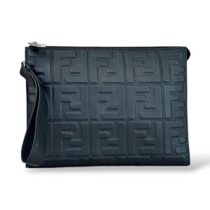 Fendi Clutch in black leather with FF embossing. A sleek and elegant clutch featuring the iconic embossed FF logo, smooth leather finish, a compact silhouette, and a secure top closure—perfect for evening outings or carrying essentials in style.