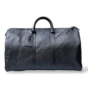 Louis Vuitton Keepall Bandoulière 50 Monogram Shadow / Louis Vuitton Black Monogram Shadow Leather Keepall Bandouliere 50 – A sleek, luxury travel bag from Louis Vuitton in all‑black Monogram Shadow embossed leather, combining the brand’s iconic LV motif with a modern, understated aesthetic. It features matte black hardware, a double‑zip closure with padlock, two top handles, an adjustable and detachable shoulder strap, and a spacious textile‑lined interior ideal for weekend trips or cabin luggage. The design is minimalist yet elegant, making it a timeless, versatile piece for both men and women.