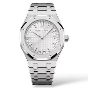 Crafted from 18-karat white gold, this 39mm masterpiece exudes a subtle yet undeniable presence. The iconic octagonal bezel with exposed screws, a hallmark of the Royal Oak collection, is a testament to Audemars Piguet’s meticulous attention to detail.