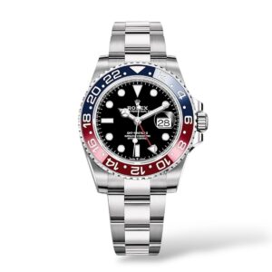 A modern icon, this 40mm GMT-Master II features a classic red and blue “Pepsi” Cerachrom bezel, robust Oystersteel case, and sporty Oyster bracelet. Powered by the Rolex Calibre 3285 with dual time zone functionality, it’s the perfect blend of heritage, precision, and travel-ready style.SKU: 55567 -