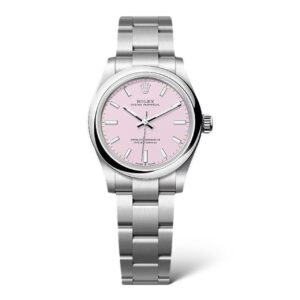 A vibrant classic, this Oyster Perpetual 31 is crafted in Oystersteel with a striking candy pink dial. Featuring a smooth bezel, luminous hour markers, and the iconic Oyster bracelet, it offers timeless Rolex elegance with a fresh, modern twist.