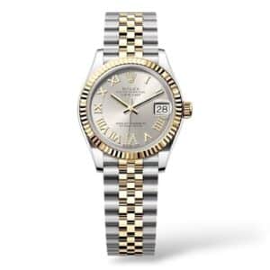 Rolex Datejust 31mm Stainless Steel and Yellow Gold 278273 is a classic midsize luxury watch combining Oystersteel and 18 ct yellow gold in Rolex’s signature Yellow Rolesor two-tone design. It features a 31 mm Oyster case with a fluted yellow gold bezel, a self-winding Calibre 2236 movement with date at 3 o’clock and Cyclops magnifier, and a comfortable Jubilee bracelet. The watch is waterproof to 100 m and blends timeless elegance with reliable precision — ideal as a refined everyday timepiece