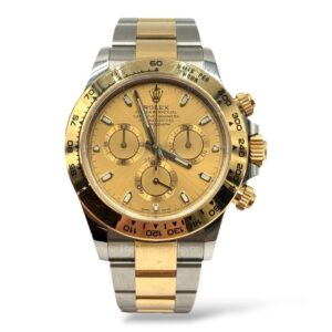 A standout Rolex Cosmograph Daytona 116503 in luxurious two-tone Oystersteel and 18 ct yellow gold. It has a 40 mm case with a matching yellow gold tachymeter bezel and a striking champagne dial with three chronograph subdials. Powered by Rolex’s precise Calibre 4130 automatic movement, it offers high performance and about 72 hours of power reserve. The watch is finished on a robust and comfortable Oyster bracelet — a perfect blend of sporty chronograph functionality and refined, timeless style. SKU: 60738 -