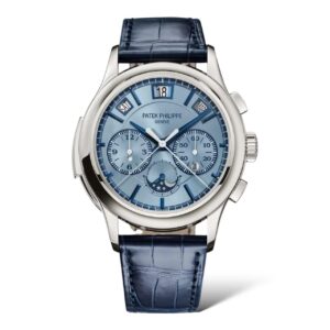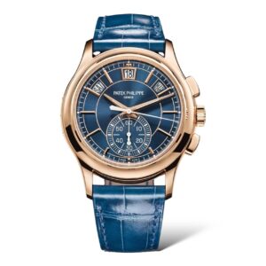 An alliance of two highly sought-after Patek Philippe complications, the self-winding flyback chronograph with Annual Calendar Reference 5905 is offered in a rose gold version with a blue sunburst dial – a modern, elegant color that reinforces the timeless style of this flagship model. The Annual Calendar requires only one correction per year, at the end of February.