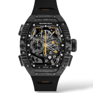 The Richard Mille RM72-01 Automatic Winding Lifestyle Flyback Chronograph is a high-luxury sports watch that showcases the brand’s first fully in-house automatic chronograph movement, the calibre CRMC1. Designed for both performance and everyday wear, it features a flyback chronograph function for instant timing reset, a date display, and a power reserve of around 50 hours. Its signature tonneau-shaped case, crafted in advanced materials such as titanium, ceramic, or precious metals, is paired with a skeletonized dial that reveals the intricate mechanics inside. Combining cutting-edge engineering, bold aesthetics, and practical functionality, the RM72-01 represents Richard Mille’s modern “lifestyle” approach to haute horology.