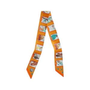The Hermès Twilly is a small, narrow silk scarf that captures the playful spirit and exquisite craftsmanship of the iconic French fashion house. Measuring approximately 86 cm x 5 cm, the Twilly is crafted from luxurious silk and features a wide range of vibrant patterns, often drawn from Hermès’ extensive archive of scarf designs.