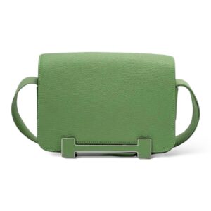 The Hermès Geta Bag Menthe Chevre PHW is a chic, compact shoulder/crossbody piece inspired by Japanese wooden sandals (“Geta”), available in a vibrant green hue with polished Palladium hardware. Crafted from supple Mysore or Chèvre leather, it features the signature H-logo magnetic clasp that doubles as strap adjuster and protective studs. Inside, there’s one main compartment and two interior slip pockets. The adjustable canvas strap offers versatility—wear it over the shoulder or crossbody.