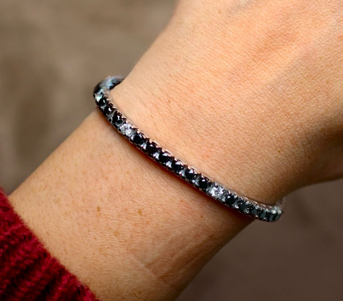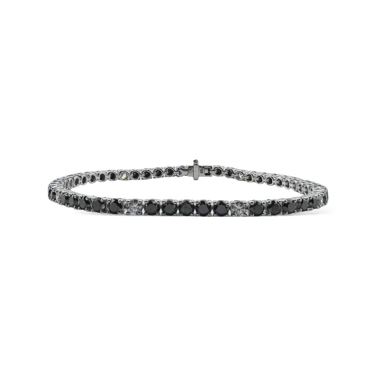 Sleek. Sophisticated. Striking. The Black and White 8.16K White Gold Diamond Bracelet is a bold reinterpretation of classic elegance. Featuring 8.16 carats of alternating black and white diamonds, this bracelet blends high contrast with high glamour for a look that’s both timeless and modern.