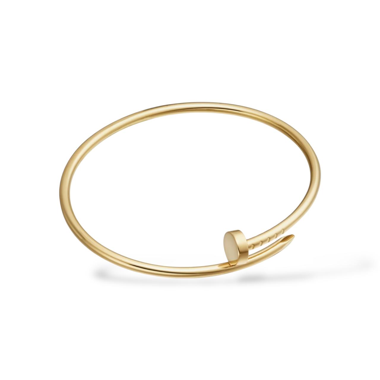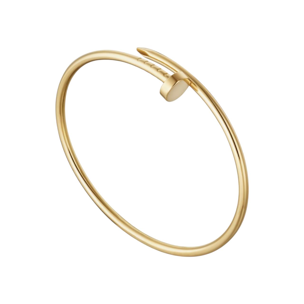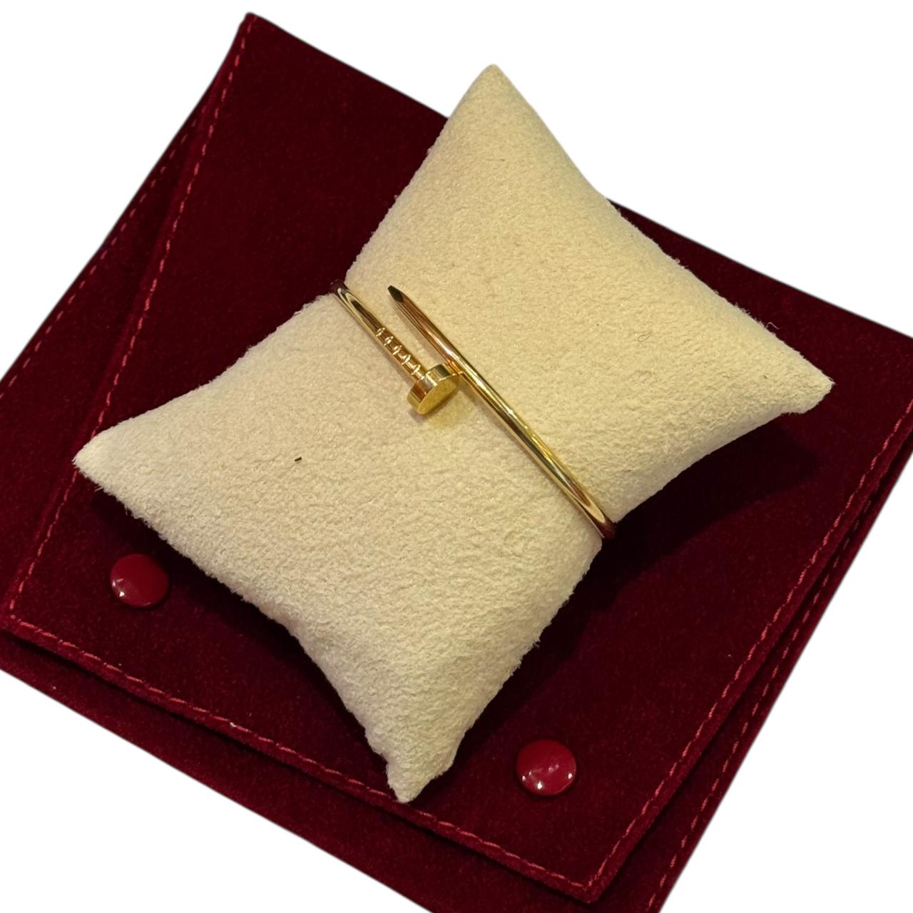 The Cartier Juste Un Clou Bracelet in 18K yellow Gold is a sleek, modern bangle inspired by the shape of a nail. Crafted in polished yellow gold, its curved, minimalist design wraps elegantly around the wrist, blending industrial edge with Cartier’s signature luxury. Bold yet refined, it’s a timeless statement piece symbolizing individuality and effortless style.