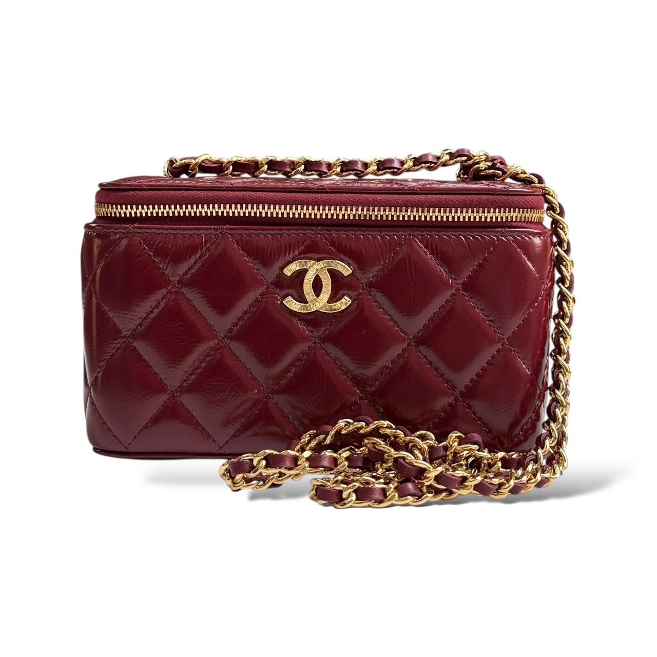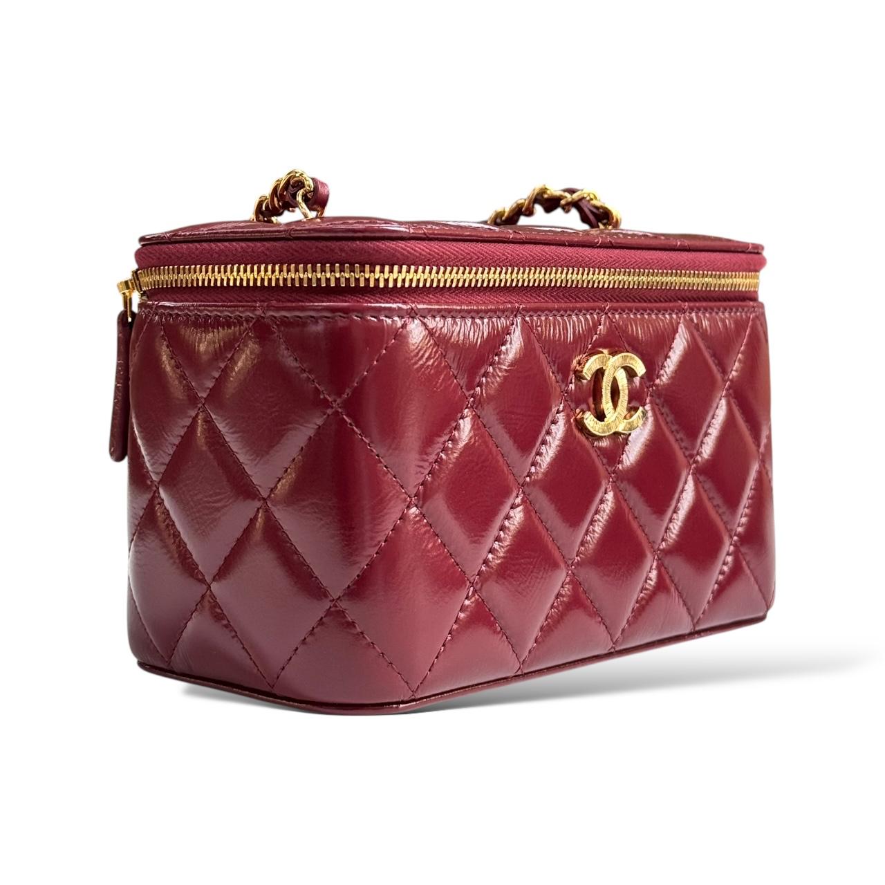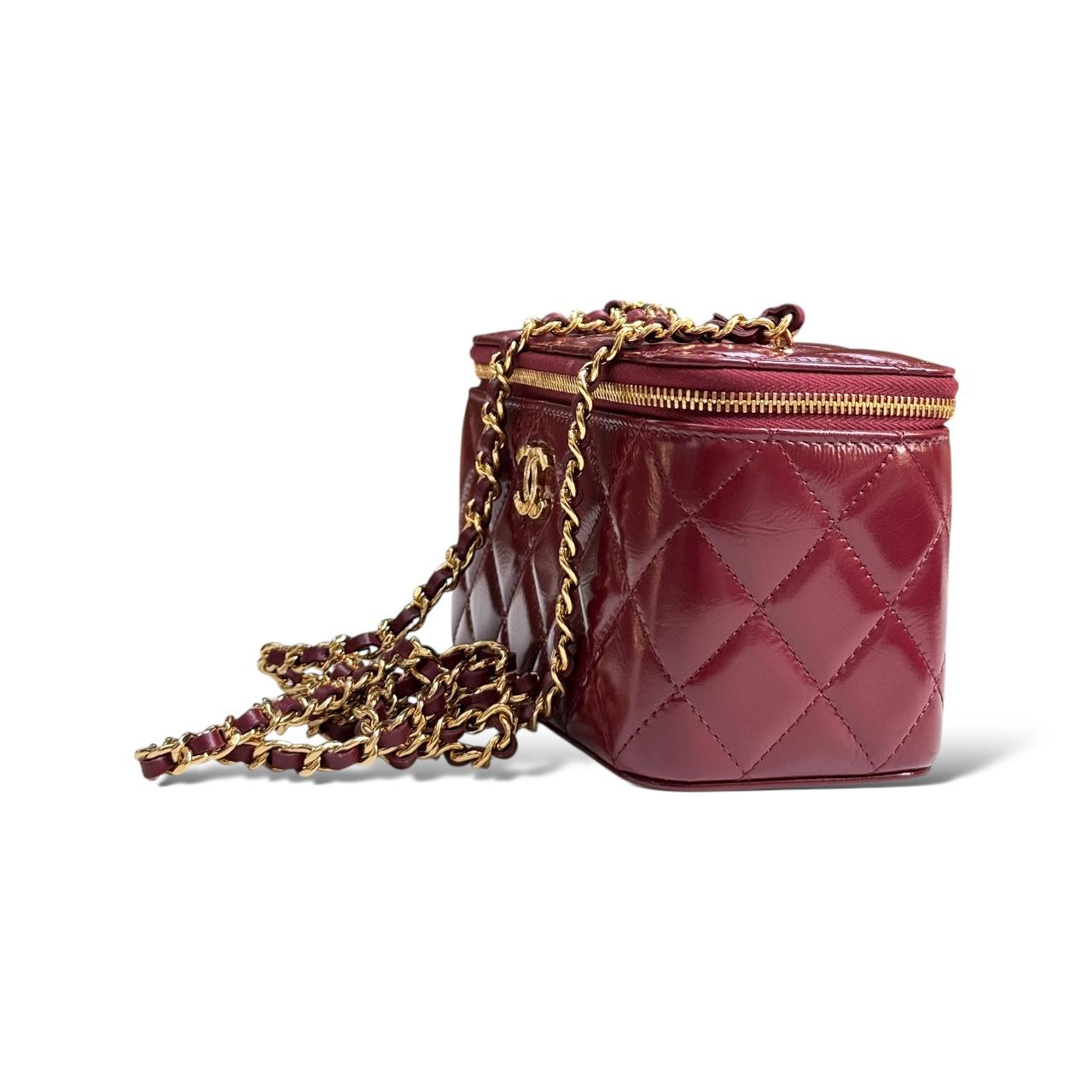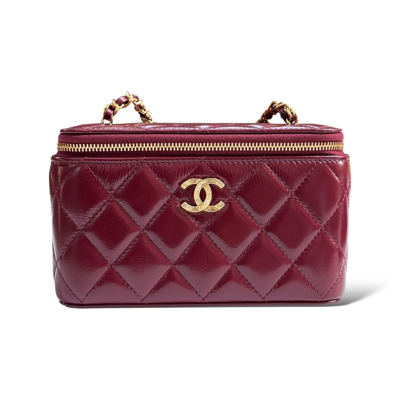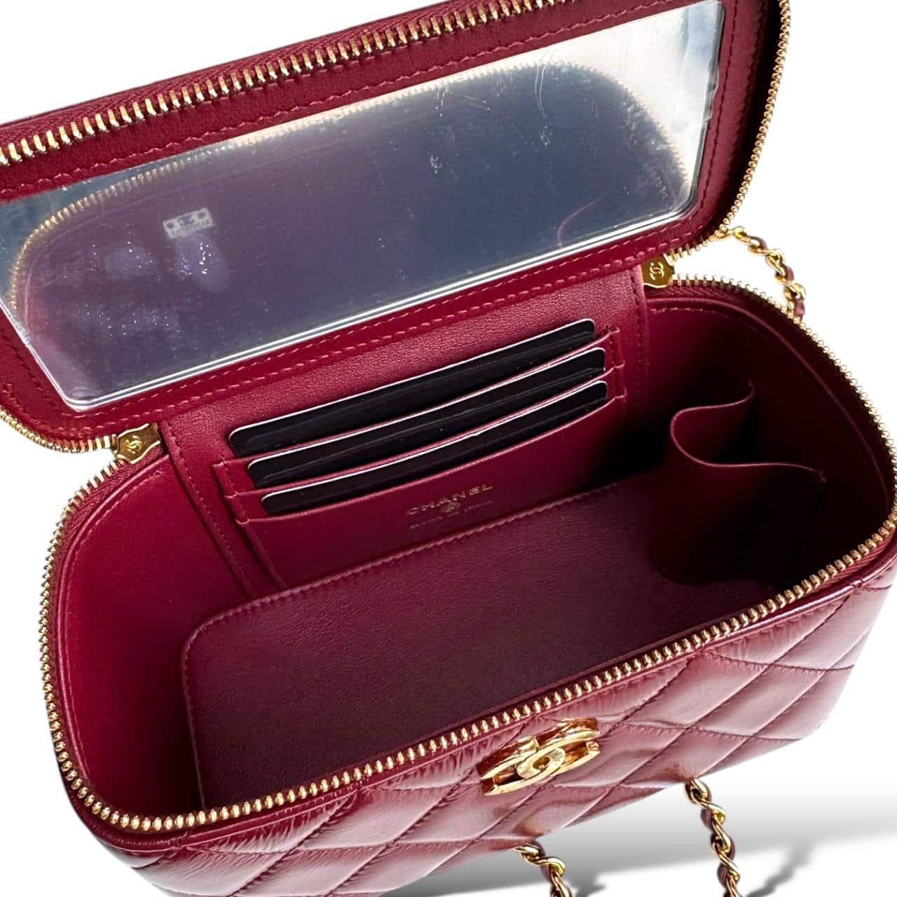 Chanel Burgundy Calfskin Leather Small CC Vanity Case Bag GHW