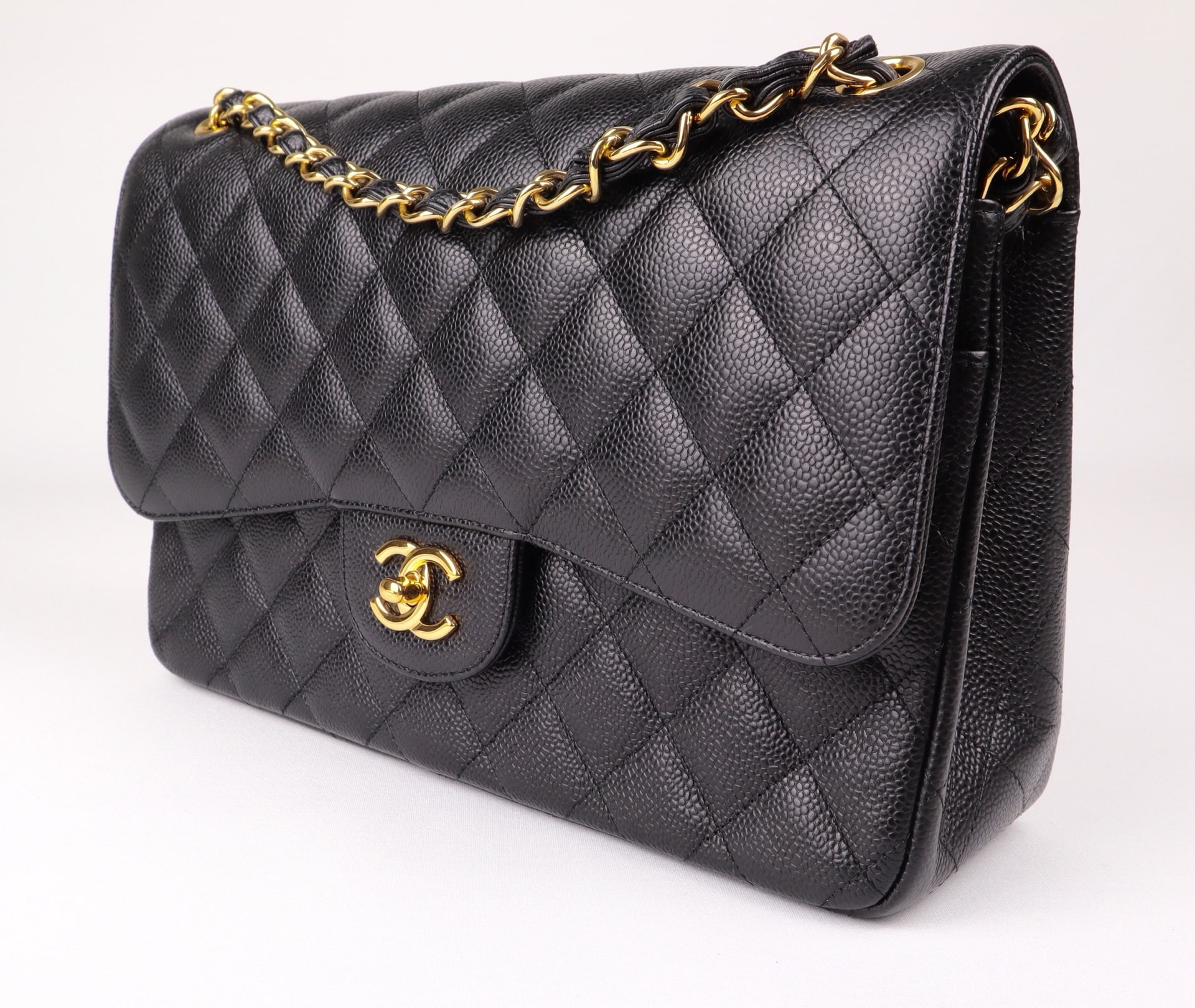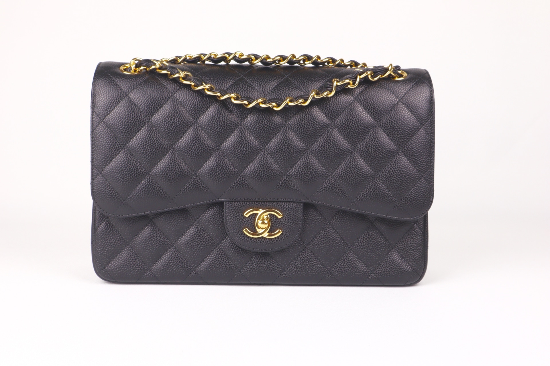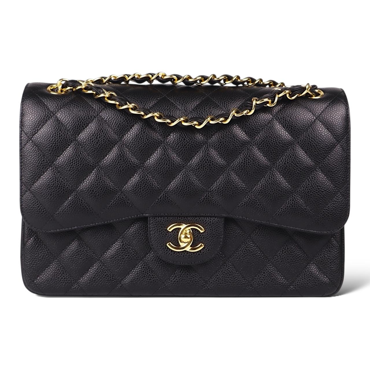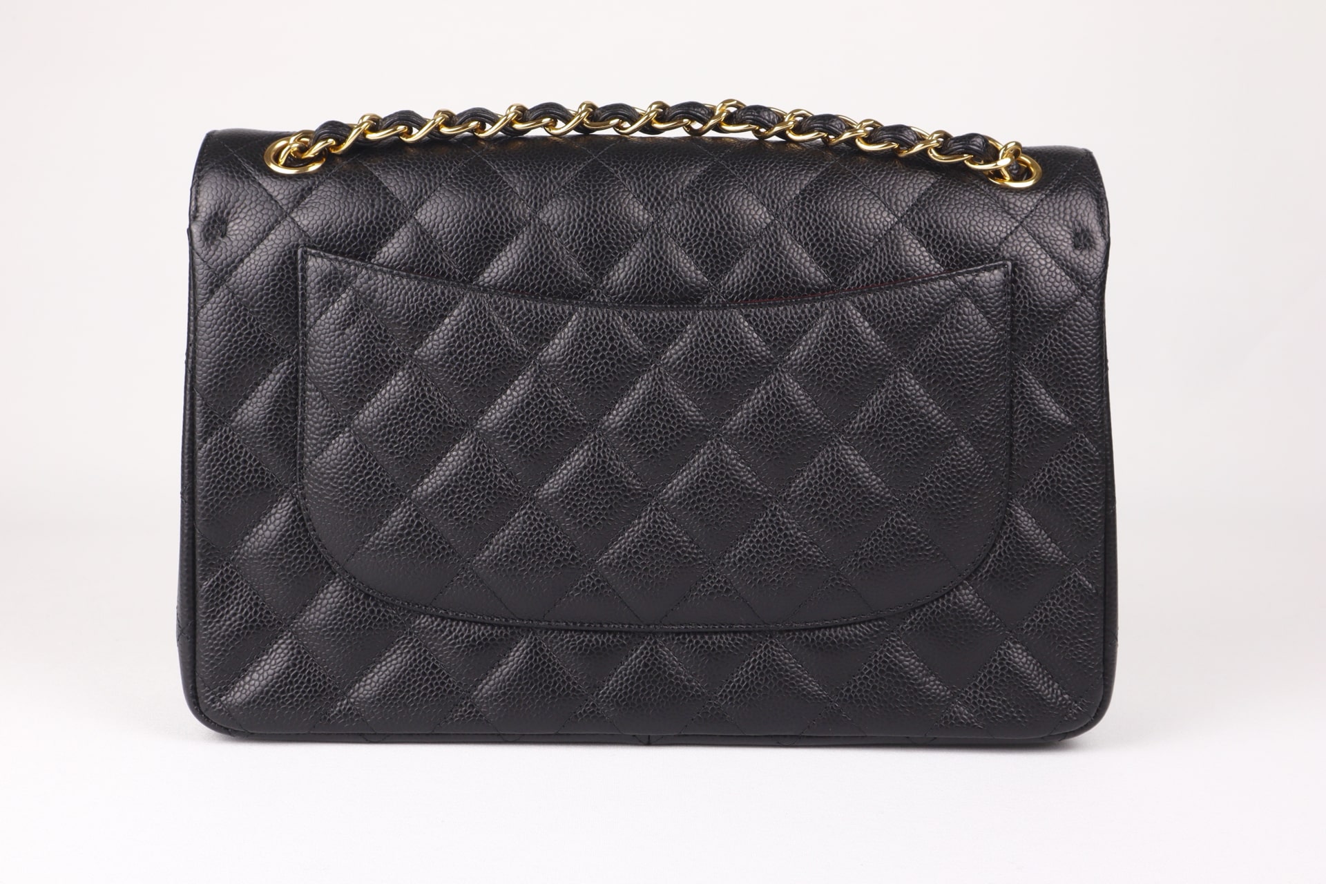 Chanel Classic Handbag Large Black Grained Calfskin GHW