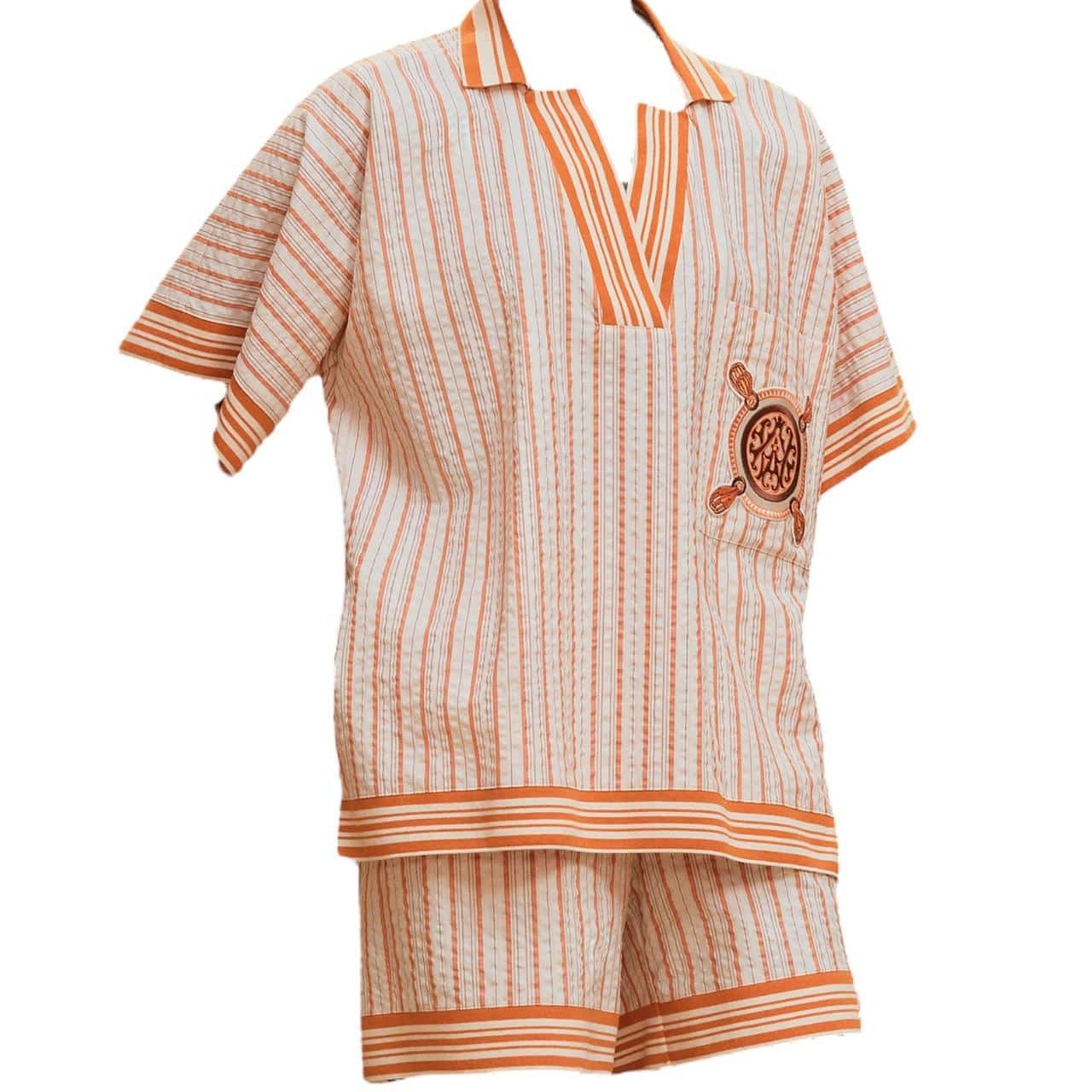 Step into effortless elegance with the Hermès Beach Shirt Set in Blanc Cassé, a refined ensemble that captures the spirit of relaxed luxury. Crafted from lightweight, breathable fabric—ideal for warm climates—this set includes a relaxed-fit shirt and matching shorts or trousers (depending on the design), both in a soft blanc cassé (off-white) shade that evokes coastal sophistication.