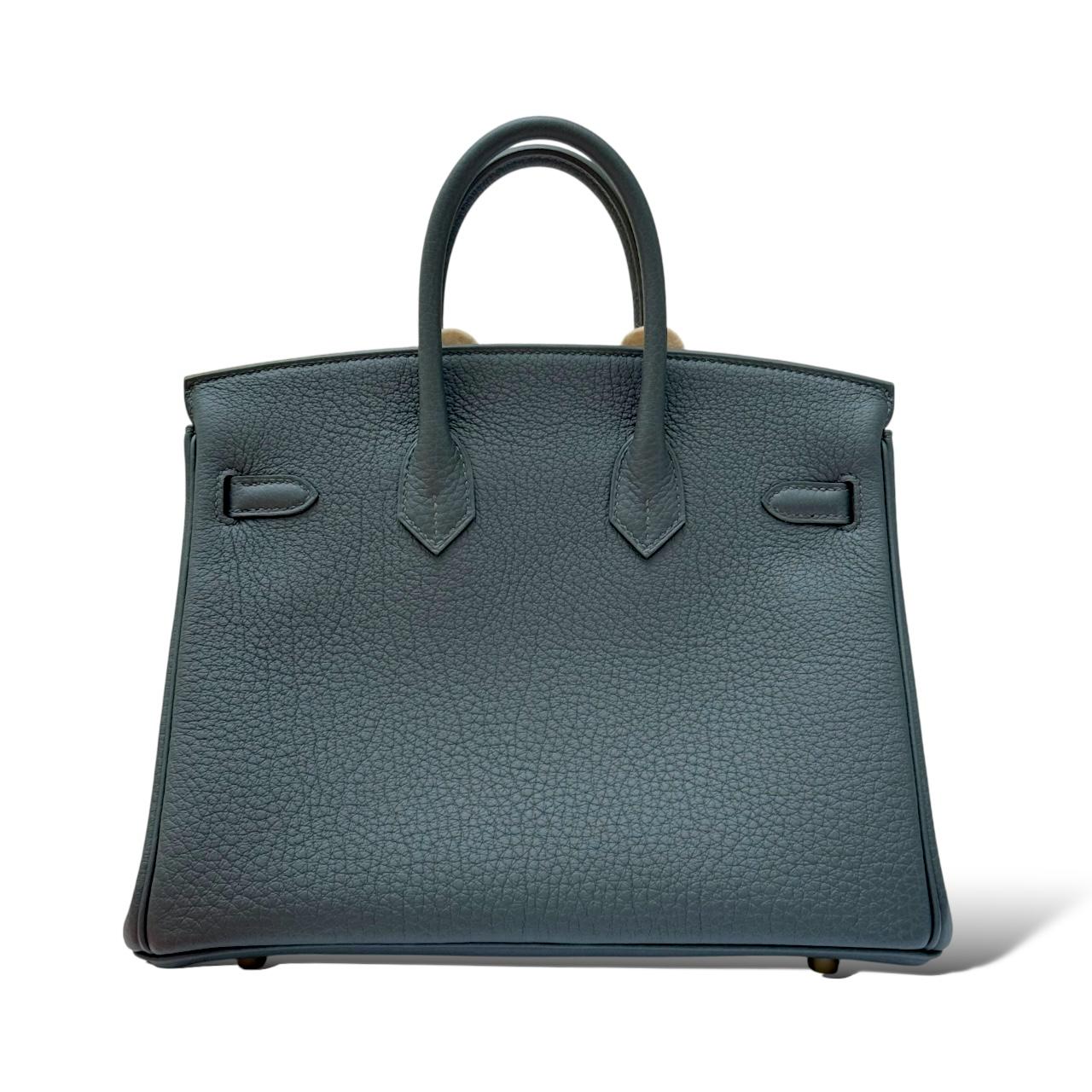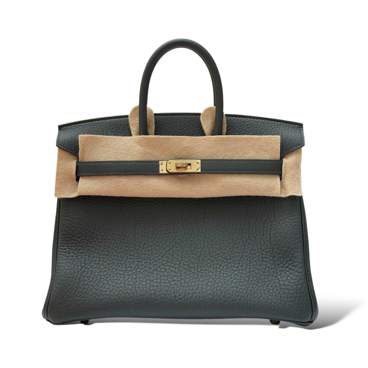 This exquisite Hermès Birkin 25 is crafted from durable Togo leather in the lush, deep green shade of Vert Mangrove. Accented with warm, matte Permabrass hardware, it offers a refined yet contemporary twist on a timeless classic—perfect for adding understated luxury to any look.