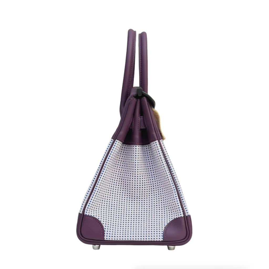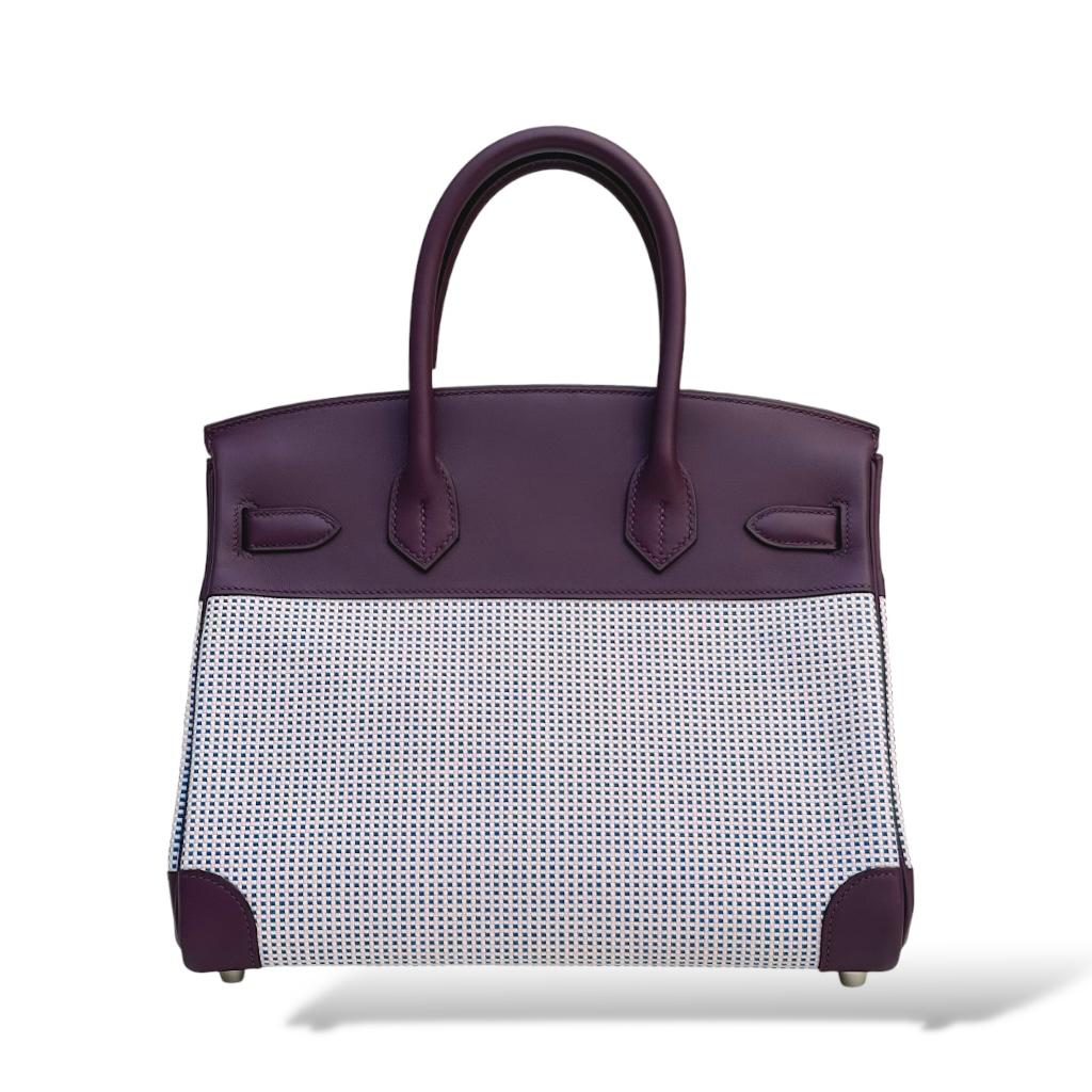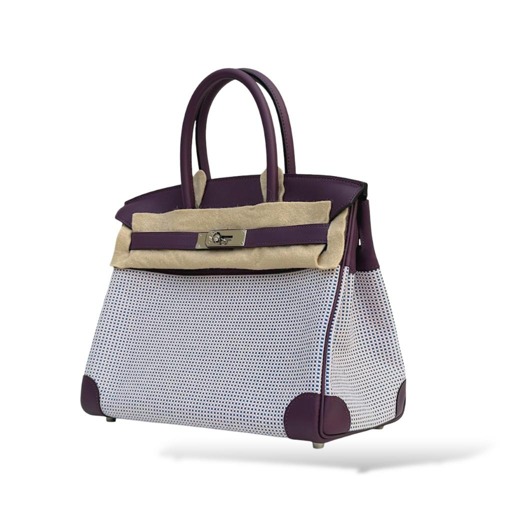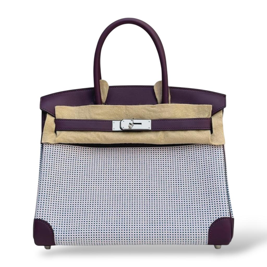 The Hermès Birkin 30 in Quadrille Ecru, Mauve, Bleu, and Cassis is a vibrant blend of colors and textures, showcasing the brand’s exquisite craftsmanship. This unique Birkin combines durable canvas with soft Swift leather, creating a striking visual contrast. The Quadrille pattern in shades of ecru, mauve, bleu, and cassis adds a contemporary twist to the classic Birkin design, making it a standout piece. The Palladium Hardware (PHW) enhances the modern aesthetic, offering a cool, sleek finish that complements the colorful exterior. This Birkin 30 is a perfect blend of elegance and playfulness, making it a versatile and eye-catching addition to any collection.
