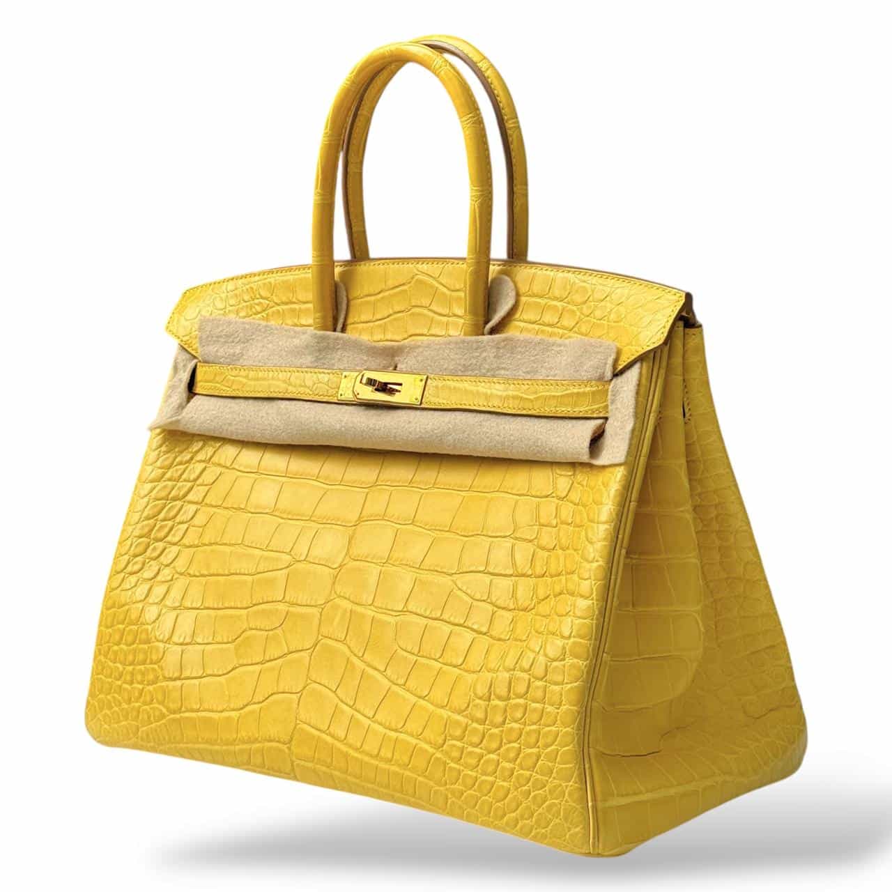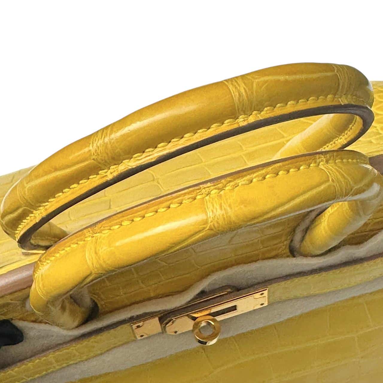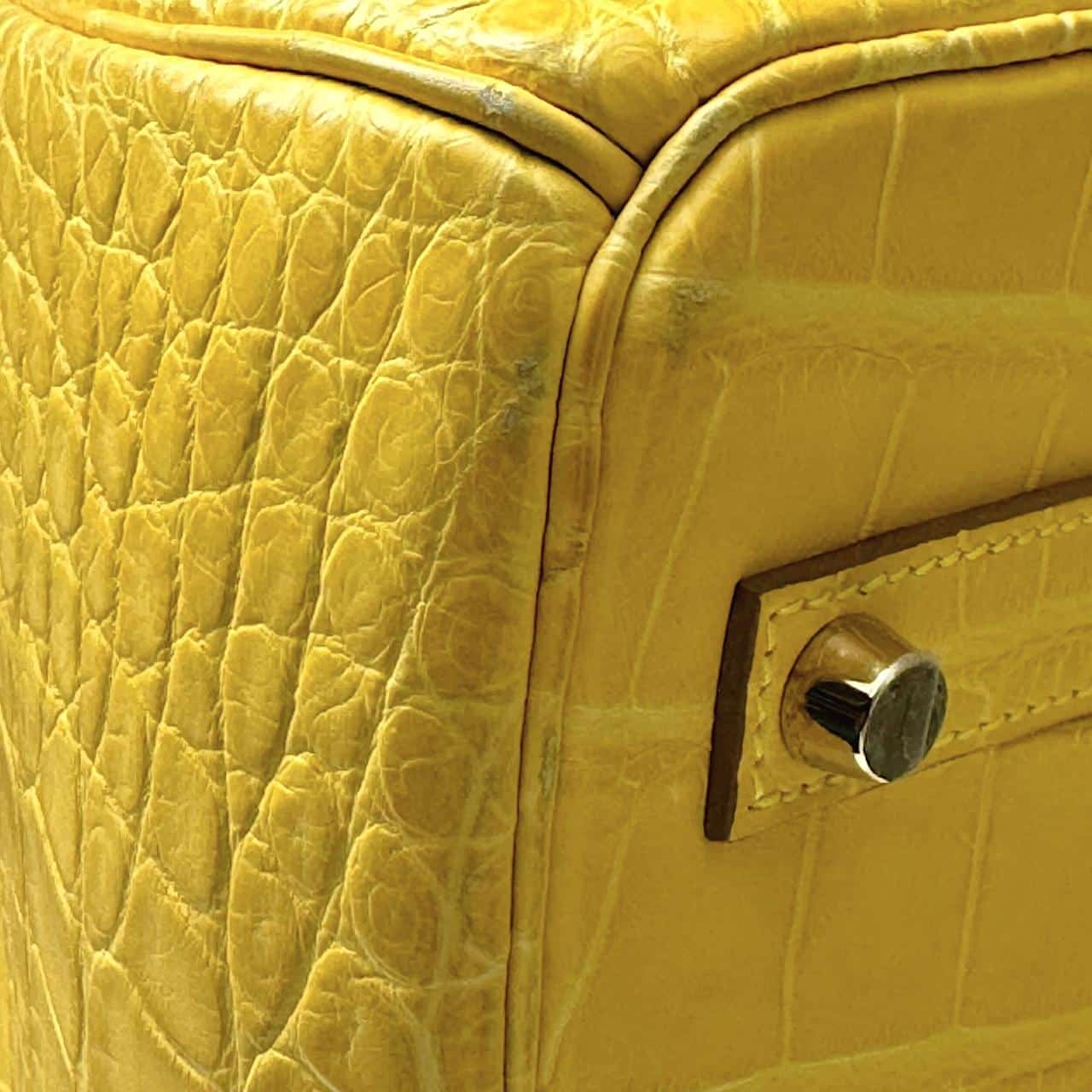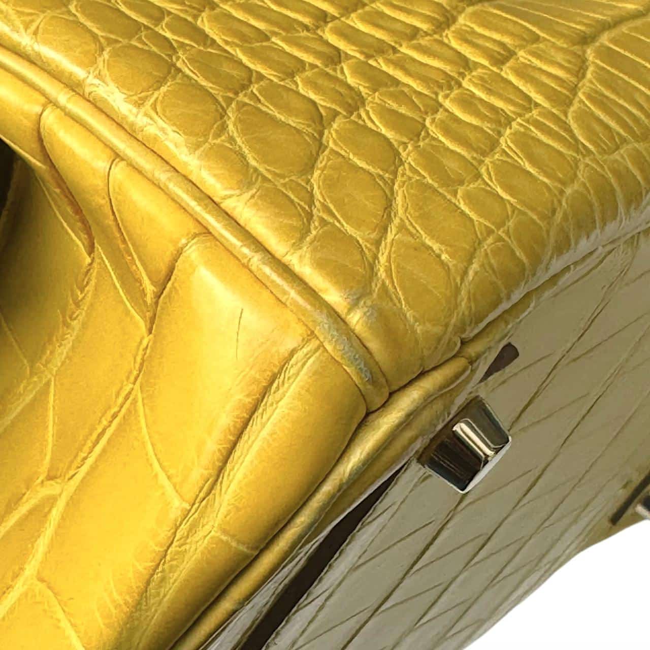 A stunning Hermès Birkin in size 35, crafted from luxurious Alligator leather in the vibrant Mimosa yellow color. This elegant and highly collectible piece features Gold Hardware (GHW), enhancing its classic and structured silhouette. A timeless statement bag showcasing exceptional Hermès craftsmanship. Comes as a full set with original packaging and accessories.