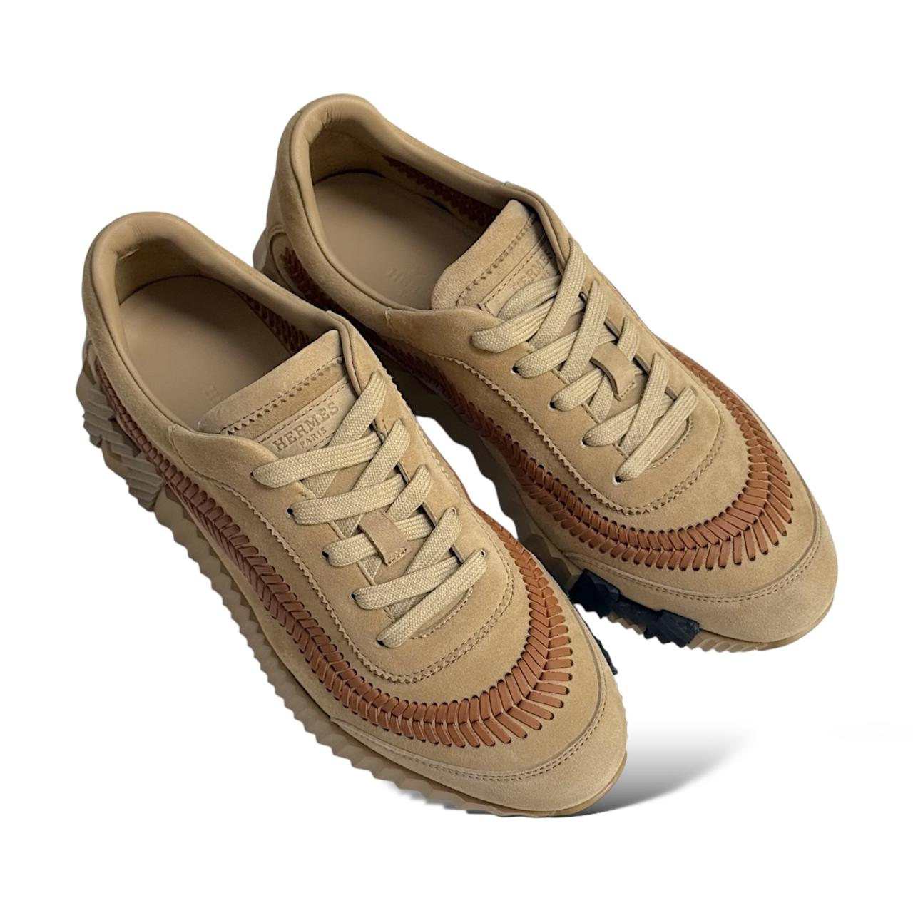 A casual-chic sneaker crafted in Beige Lin and Naturel tones, the Hermès Bouncing combines sporty comfort with refined design. Featuring lightweight construction and signature Hermès detailing, it delivers effortless everyday style.