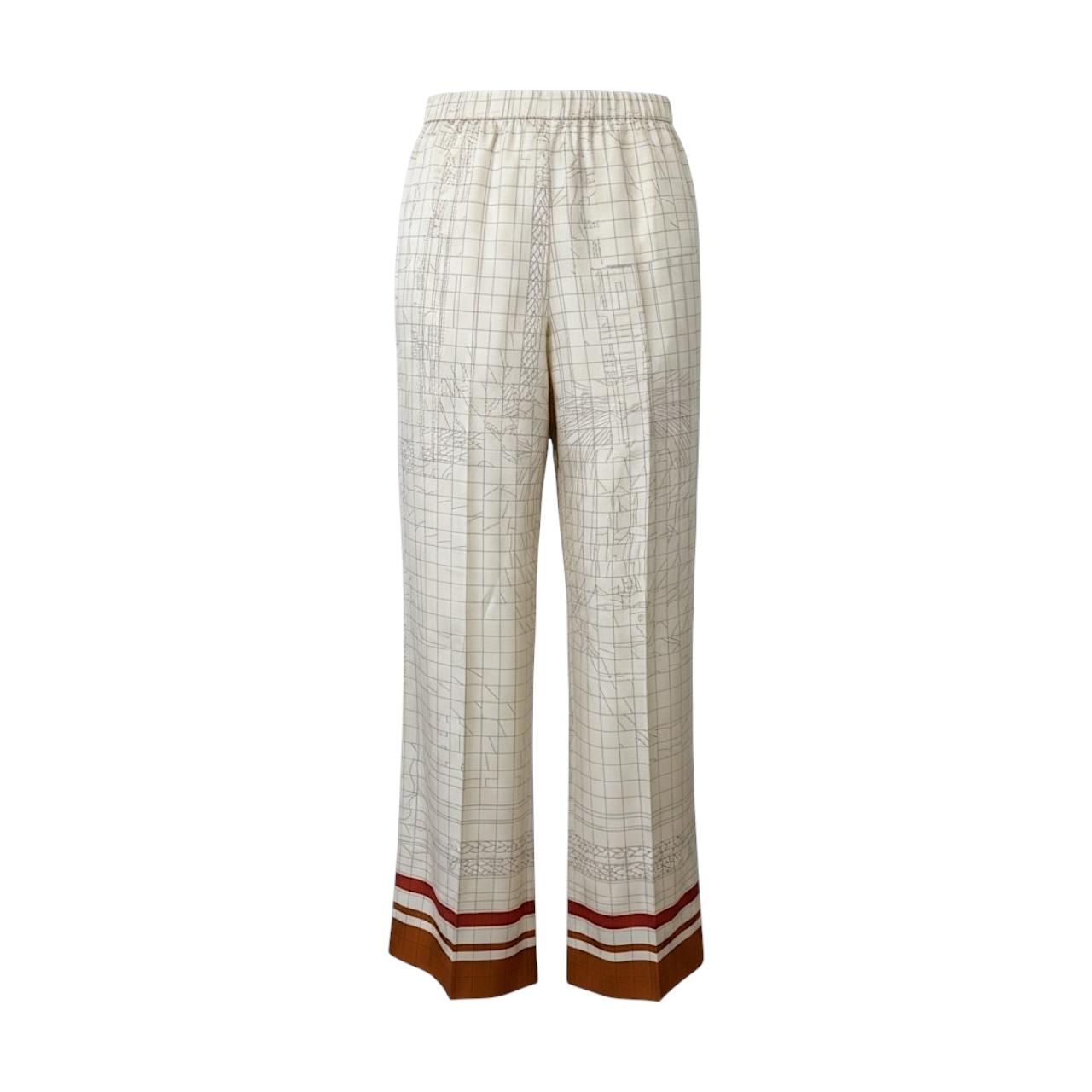 These tailored pants showcase a classic Hermès silhouette in soft Beige Kaolin. Featuring refined lines, comfortable tailoring, and signature craftsmanship, they blend timeless elegance with upscale casual ease.