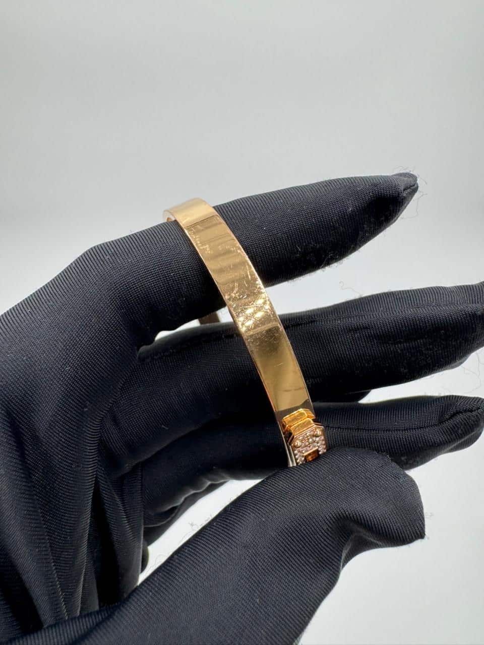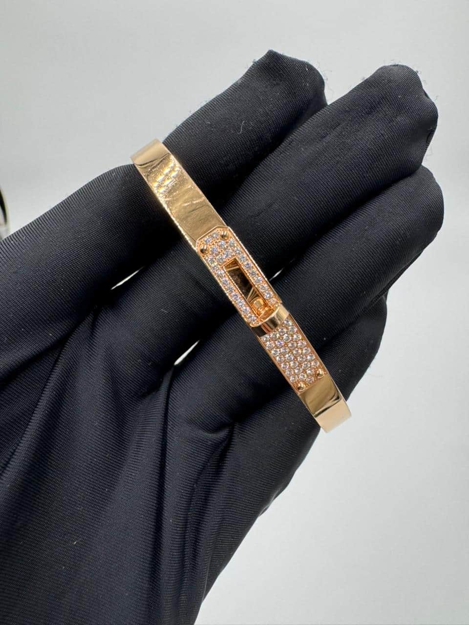 This bracelet is a tribute to the iconic Kelly bag, featuring a delicate yet distinctive design that captures the essence of Hermes’ heritage. Crafted with precision, the Rose Gold finish adds a touch of warmth and luxury to your wrist.