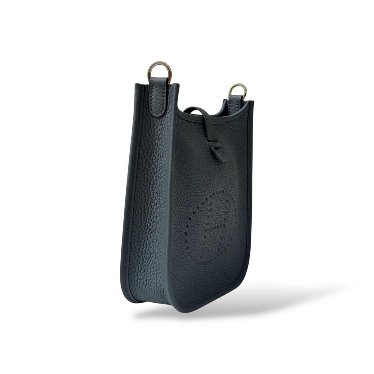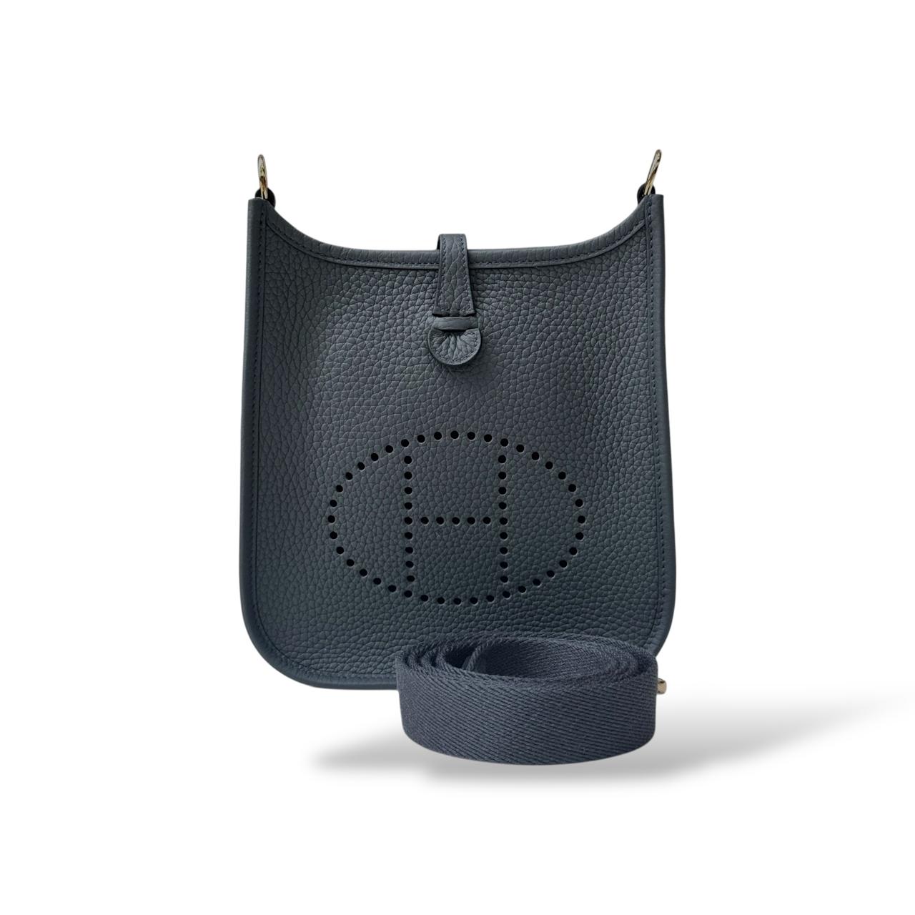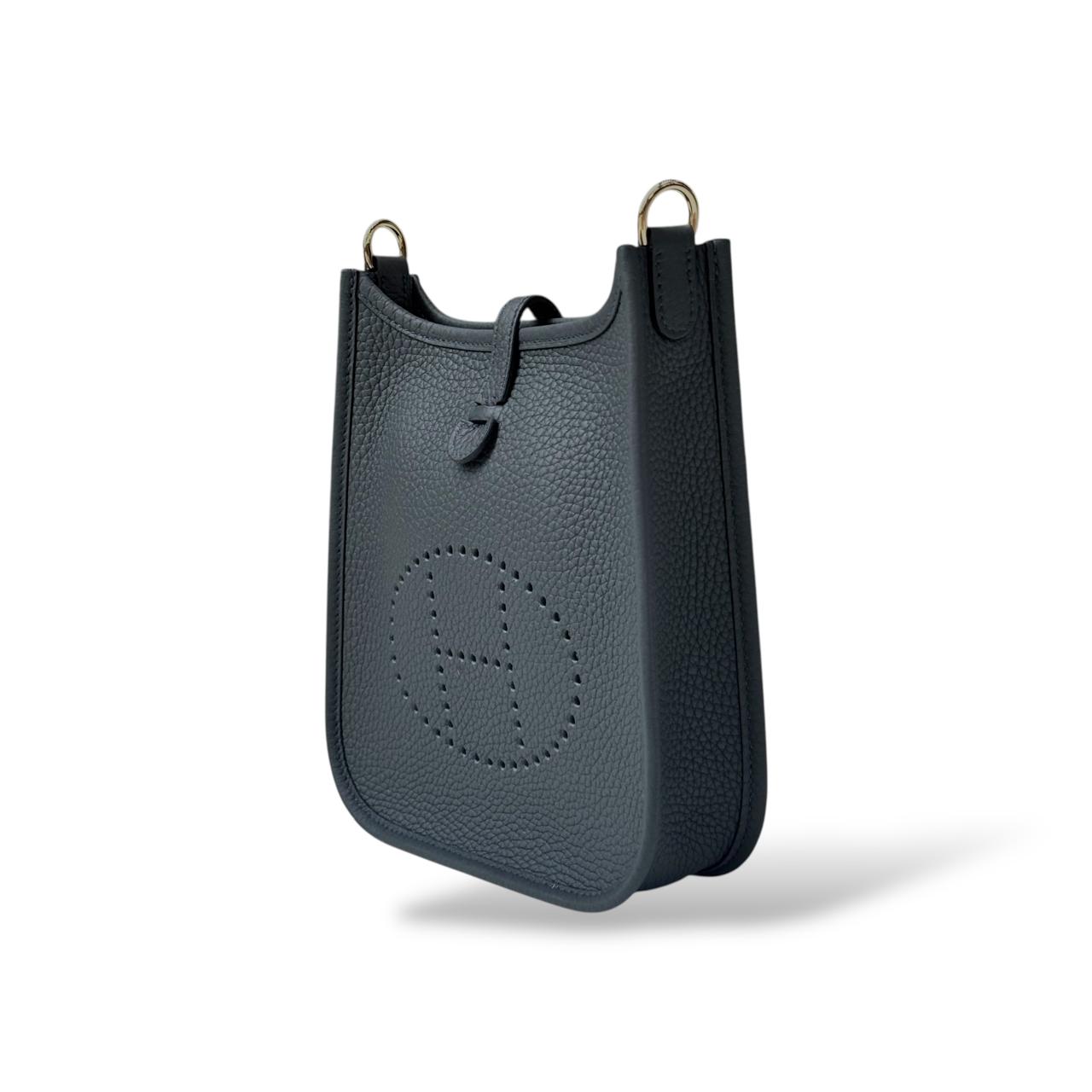 The Hermès Mini Évelyne is a compact, elegant crossbody bag crafted from premium leather, featuring the signature perforated “H” logo on the front. Designed for everyday use, it offers a practical interior with a single main compartment and an adjustable shoulder strap for versatile styling. Its understated design and impeccable craftsmanship make it a timeless accessory for both casual and refined looks.