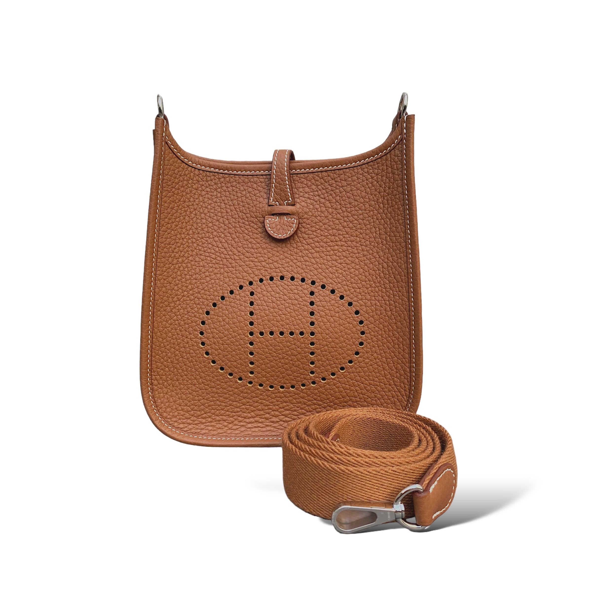 Introducing the Hermès Mini Evelyn Gold Bag, a timeless accessory that exudes elegance and sophistication. Crafted with meticulous attention to detail, this black leather bag showcases the brand’s iconic design and impeccable craftsmanship. Its sleek silhouette and adjustable shoulder strap make it a versatile companion for any occasion.