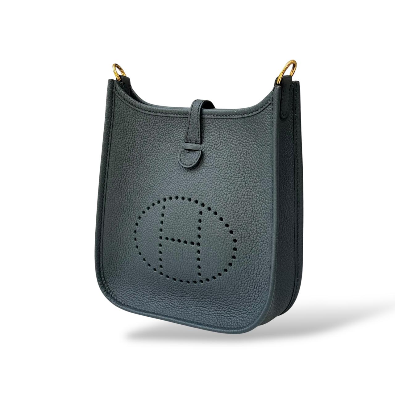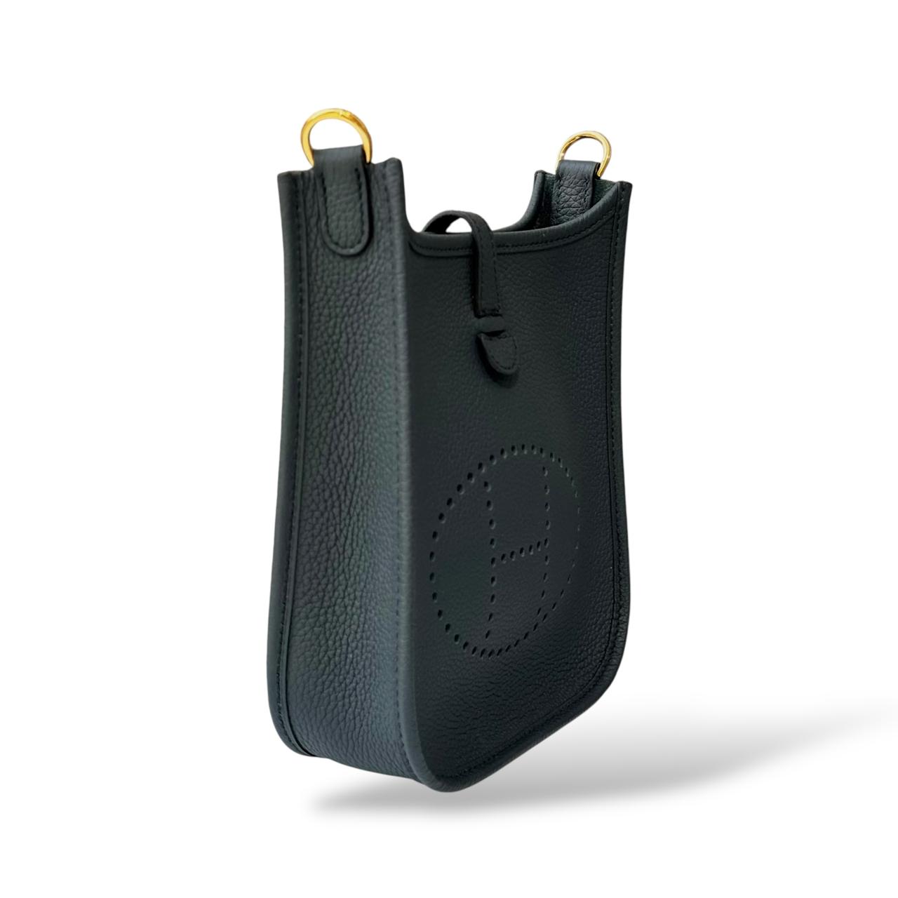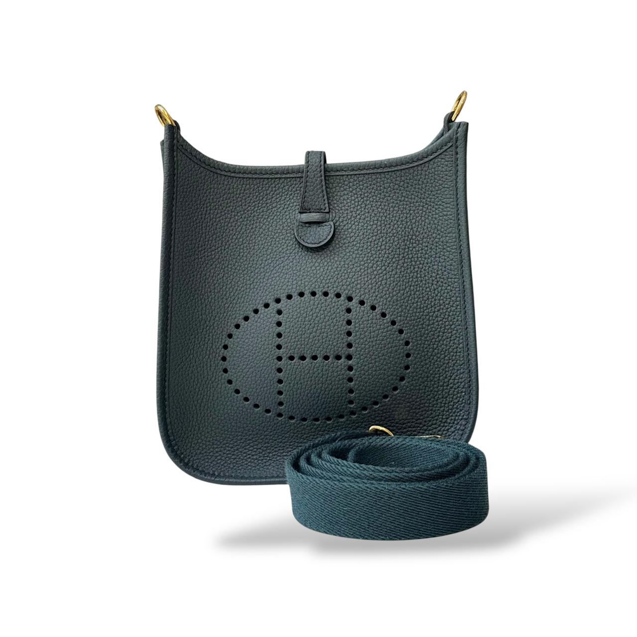 A compact everyday classic, the Mini Evelyne is crafted from supple Clemence leather in deep Vert Mangrove green, accented with gleaming gold hardware (GHW). Featuring the signature perforated “H” logo and an adjustable canvas strap, it delivers effortless crossbody elegance.
