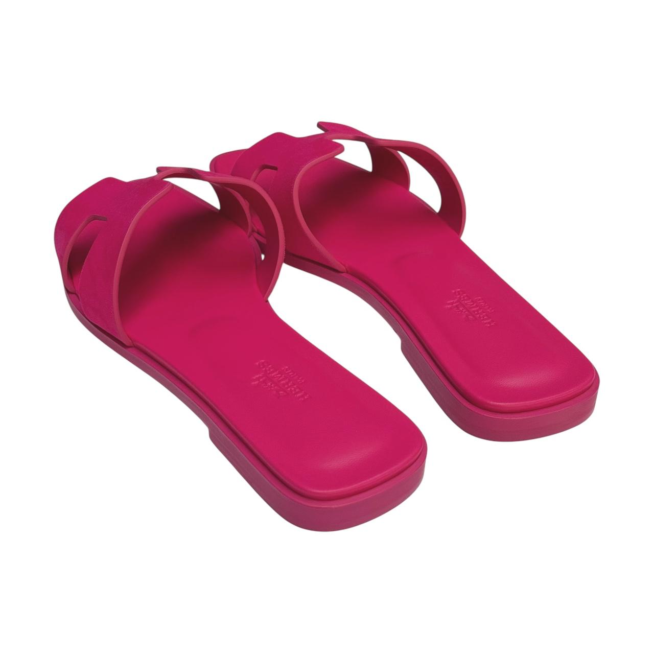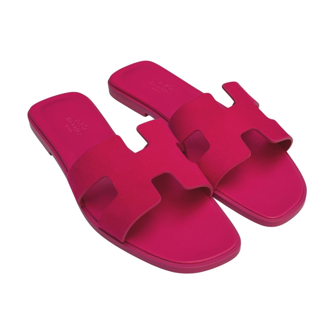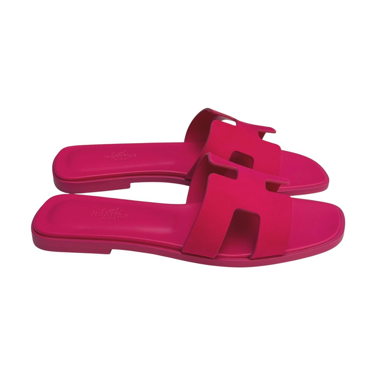 The Hermes Oran Sandals are a timeless classic, renowned for their simple yet elegant design. Crafted from high-quality leather, these sandals feature the iconic ‘H’ cut-out on the upper, which adds a touch of sophistication and brand recognition. The Oran Sandals are designed for comfort and style, making them perfect for casual outings and chic summer looks.Â
