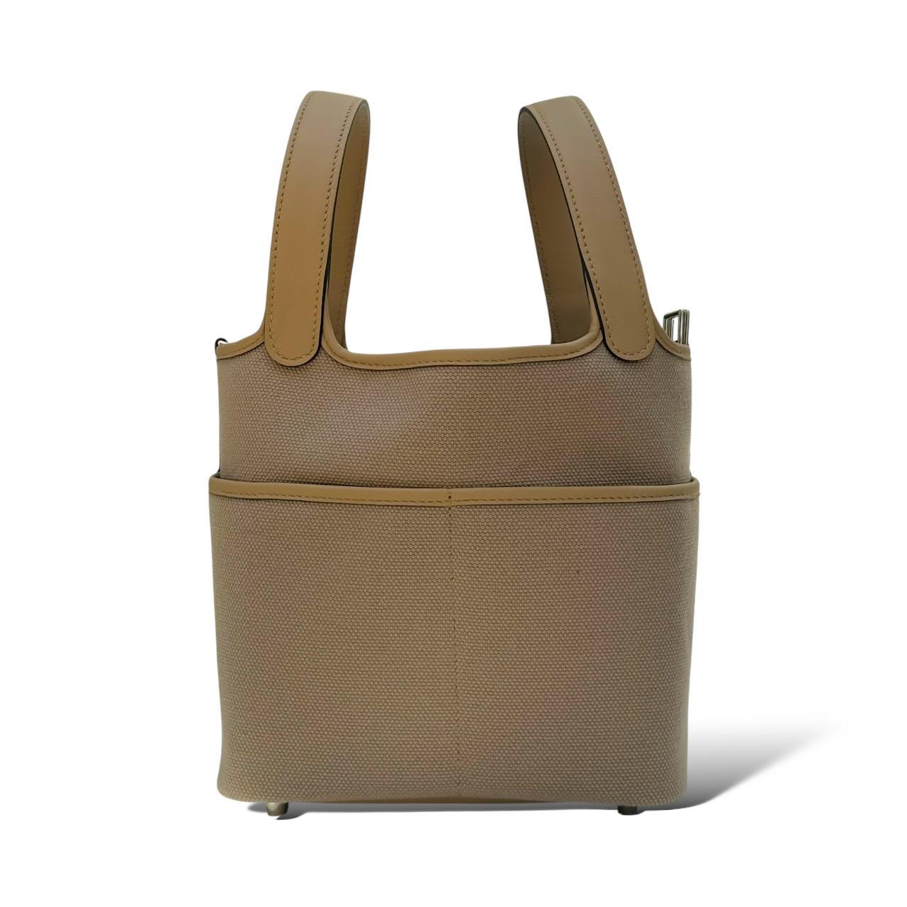 The Hermès Picotin 18 Cargo is a fresh, contemporary twist on the classic Picotin silhouette. Inspired by utility and military aesthetics, this version features canvas cargo-style pockets and leather detailing, blending functionality with luxury craftsmanship. Made from durable materials like Swift leather and toile canvas, it retains the iconic bucket shape with a relaxed yet structured form.