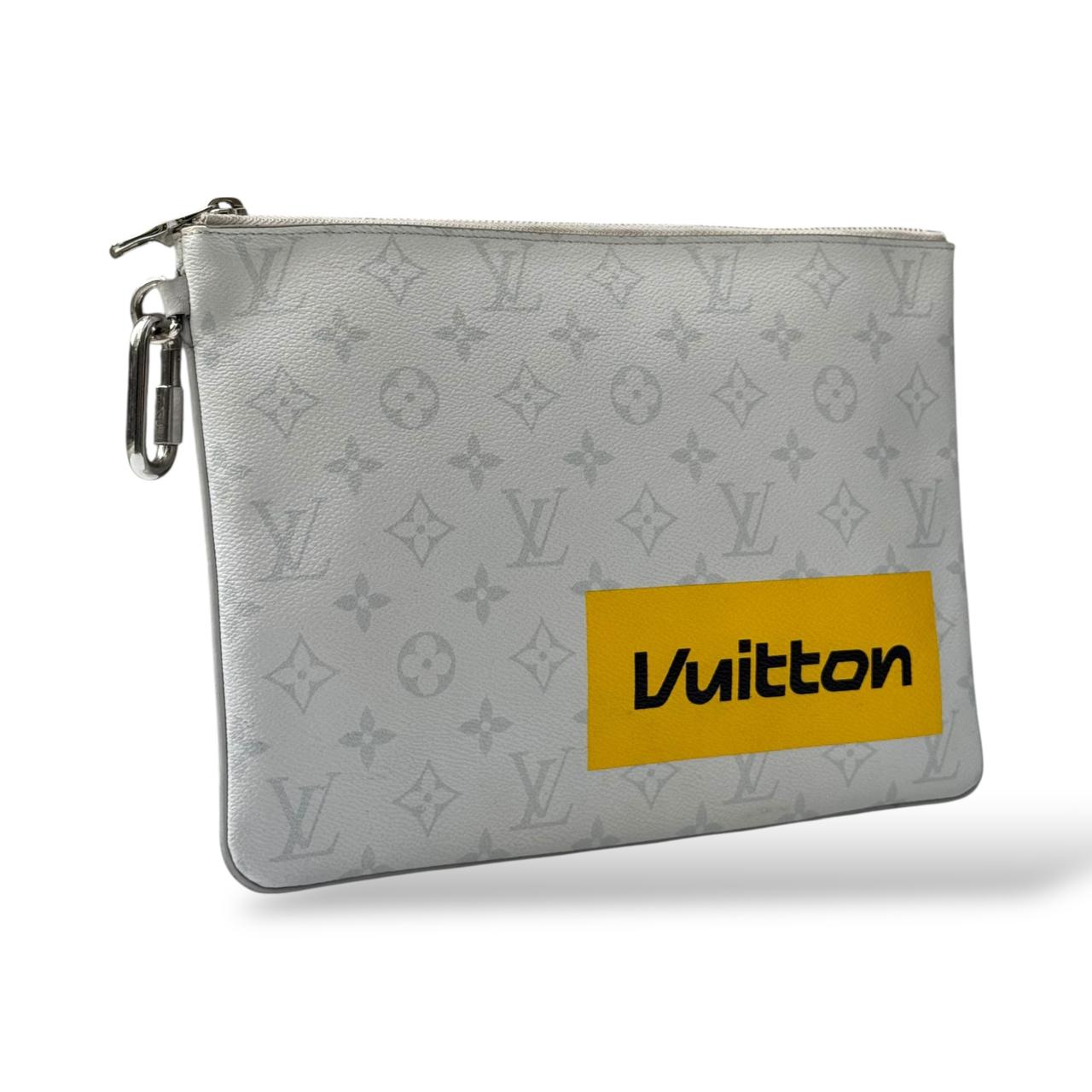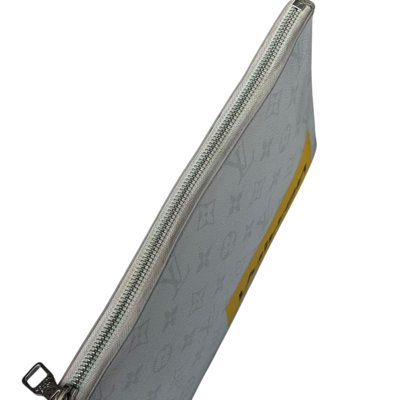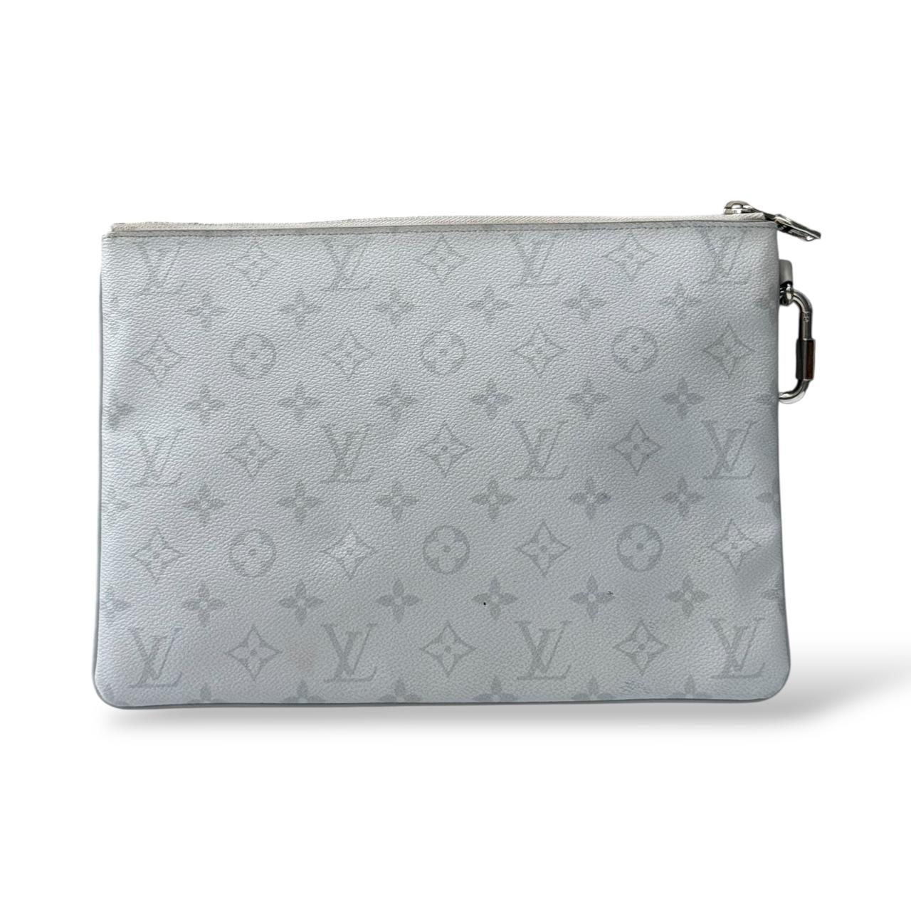A roomy, sophisticated grey zip pouch from Louis Vuitton in the GM size, crafted in premium materials with the brand’s signature aesthetic. Designed to function as a versatile cosmetic, travel, or organizer pouch, it features a secure zip closure and a sleek minimalist silhouette that fits easily inside larger bags or luggage. Ideal for stylishly storing essentials like makeup, toiletries, or tech accessories.