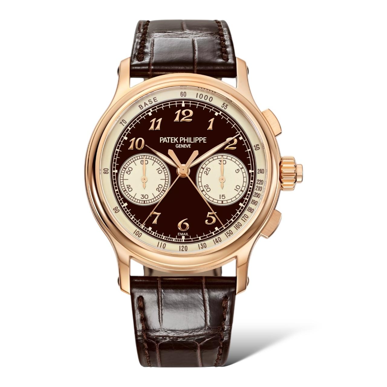 This 41 mm diameter (13.56 mm thick) watch in 18 k rose gold houses the hand-wound calibre CHR 29-535 PS, delivering split-seconds chronograph functionality with a 30-minute counter and small seconds. The dial is crafted in brown “Grand Feu” enamel with beige champlevé enamel sub-dials and tachymeter scale, mounted on an 18 k gold plate. It is paired with a dark chestnut alligator strap and rose-gold triple-blade fold-over clasp, offering both refined aesthetic and technical sophistication.