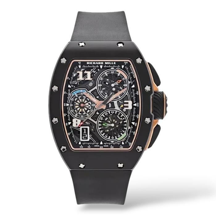 The Richard Mille RM72-01 Automatic Winding Lifestyle Flyback Chronograph is a high-luxury sports watch that showcases the brand’s first fully in-house automatic chronograph movement, the calibre CRMC1. Designed for both performance and everyday wear, it features a flyback chronograph function for instant timing reset, a date display, and a power reserve of around 50 hours. Its signature tonneau-shaped case, crafted in advanced materials such as titanium, ceramic, or precious metals, is paired with a skeletonized dial that reveals the intricate mechanics inside. Combining cutting-edge engineering, bold aesthetics, and practical functionality, the RM72-01 represents Richard Mille’s modern “lifestyle” approach to haute horology.