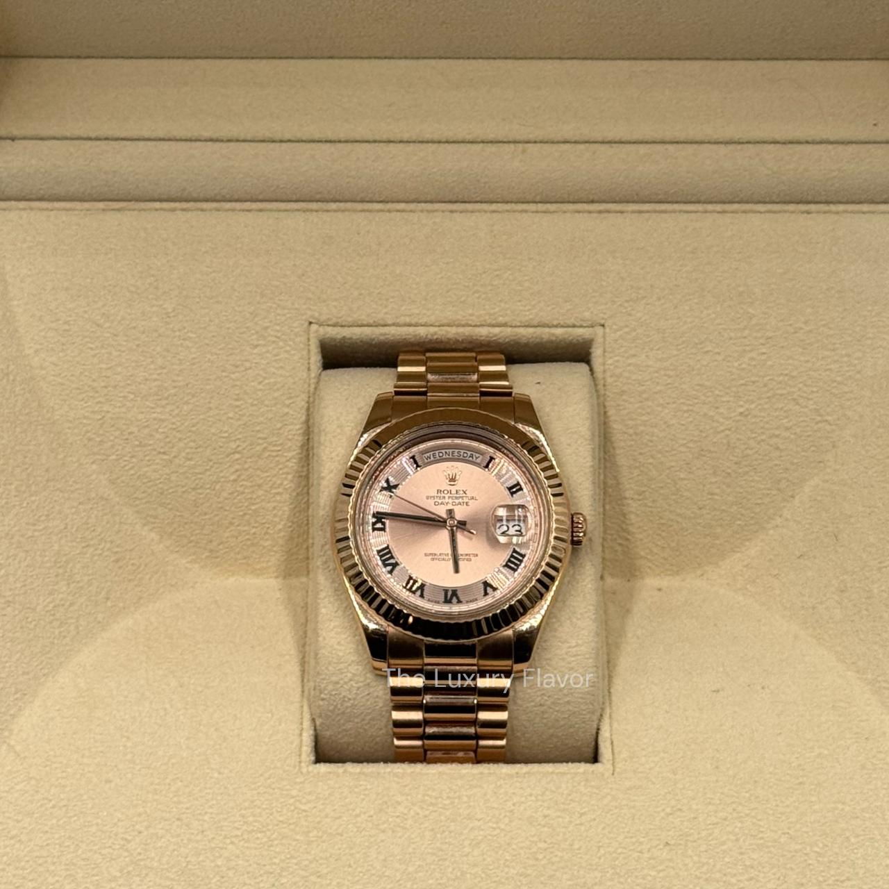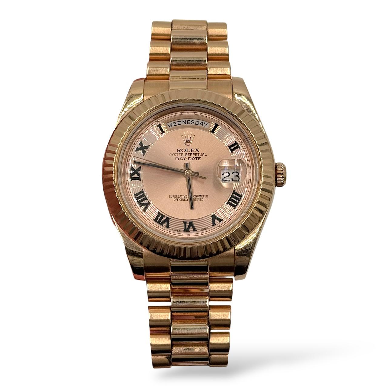 Rolex Day-Date II 41mm 218235 Rose Gold Concentric Roman Numeral Dial